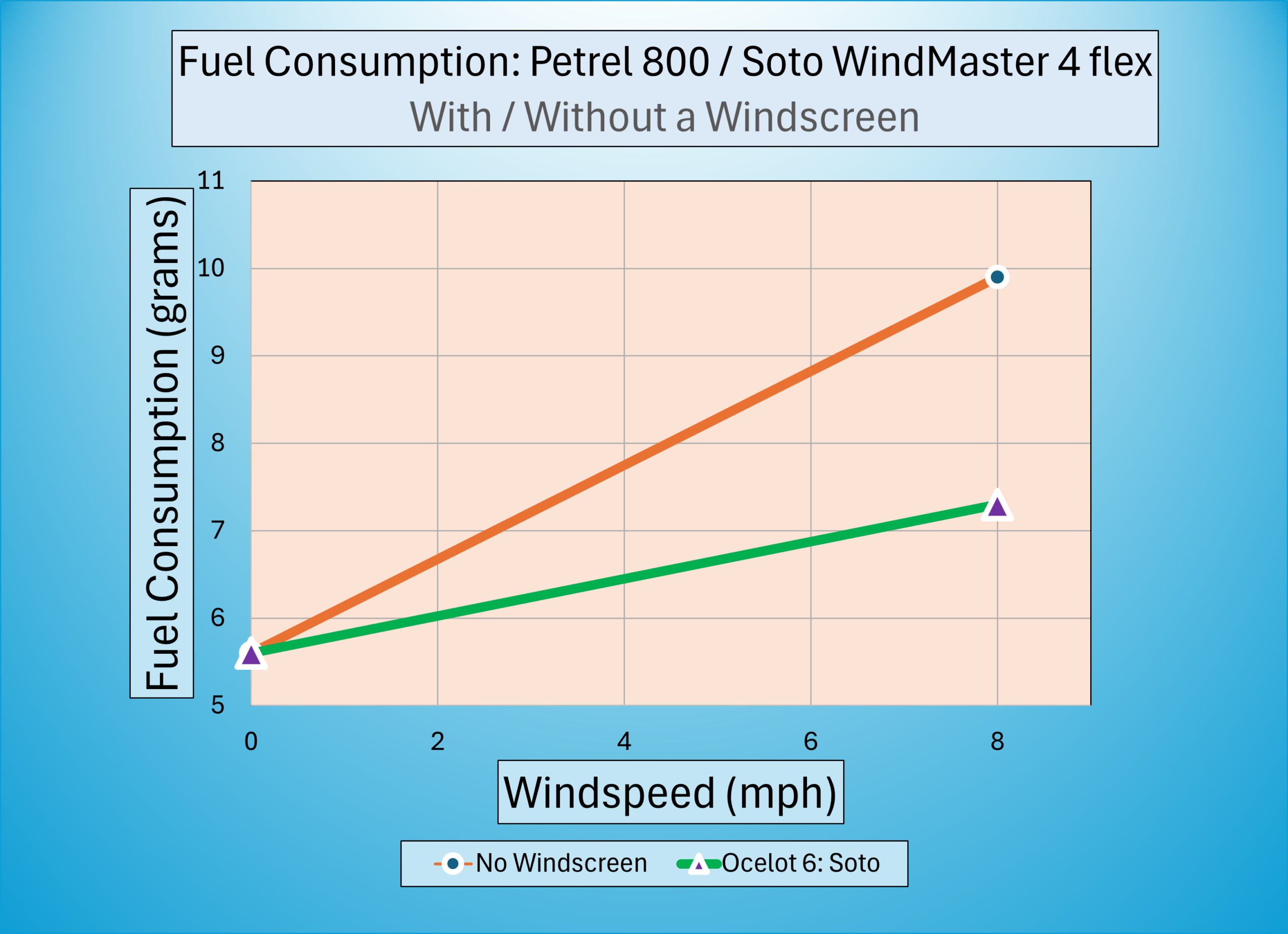 At Flat Cat Gear, we tackled this problem by creating windscreens that adapt stoves to be compatible with the Petrel series of mugs. (see the matrix below). We do this and preserve the optimal burner to pot bottom distance as defined by the stove manufacture. The windscreens enable fantastic fuel efficiencies in the high winds. The windscreens are designed to completely nest inside your cookware (see performance charts below).